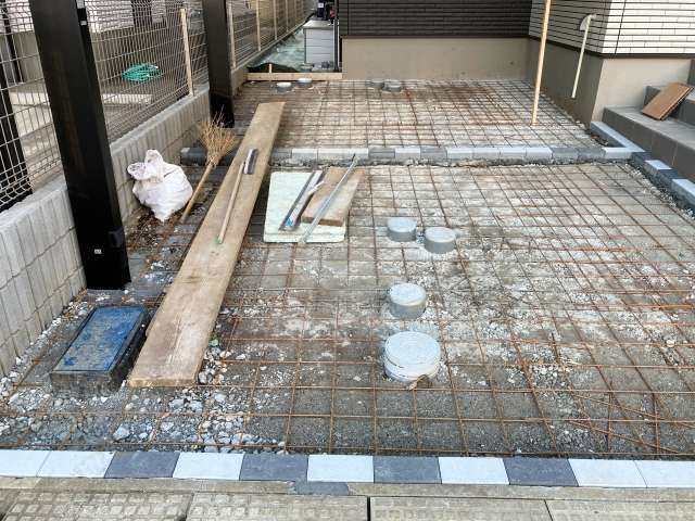 車の重さに耐えるためには、しっかりとした地盤処理と鉄筋コンクリートが必要。