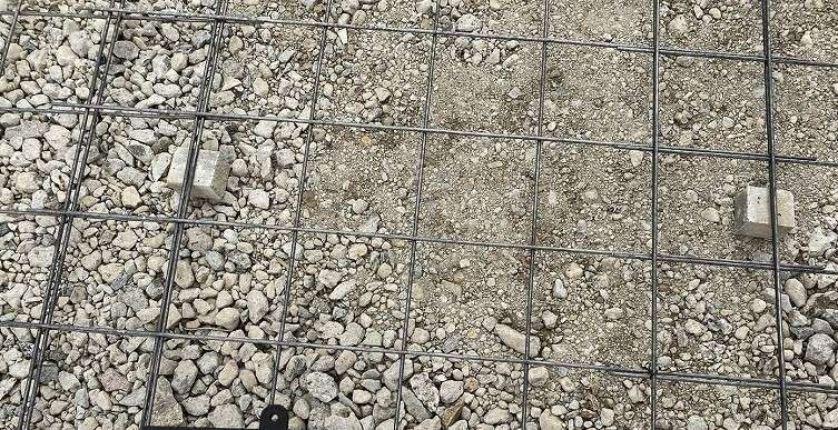 そこで、プロは「サイコロ」と呼ばれる小さなコンクリートブロックを等間隔に敷き、メッシュを浮かせてから打設します。🎲