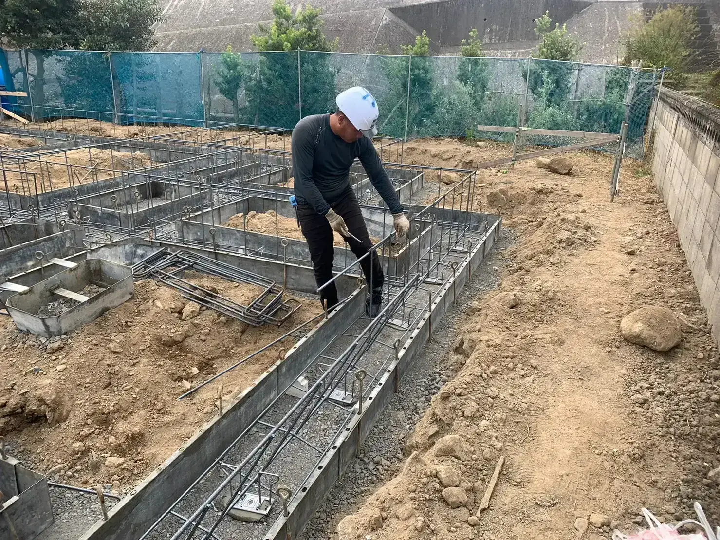 建物を建てる位置が定まったところで、鉄筋を組みます。